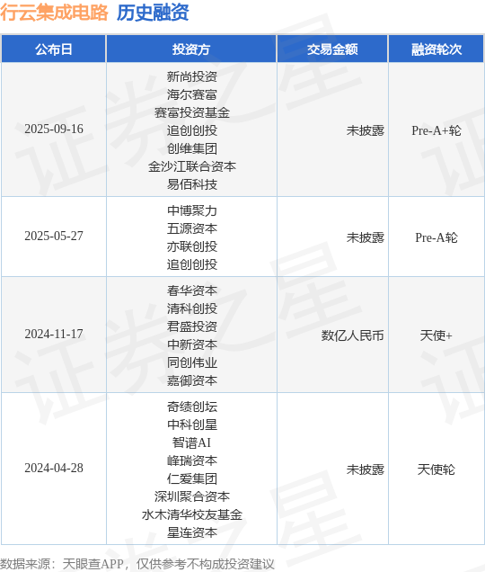 证券之星消息,根据天眼查APP于9月16日公布的信息整理,北京行云集成电路有限公司Pre-A+轮融资,融资额未披露,参与投资的机构包括新尚投资,海尔赛富,赛富投资基金,追创创投,创维集团,金沙江联合资本,易佰科技。
