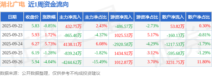 资金流向数据方面,本周湖北广电主力资金合计净流出1378.39万元,游资资金合计净流入66.17万元,散户资金合计净流入1312.22万元。本周资金流向一览见下表: