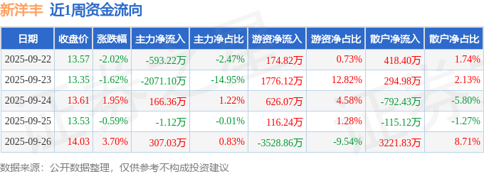 沪深股通持股方面,截止2025年9月26日收盘,新洋丰深股通持股数为1453.89万股,占流通股比为127.0%。