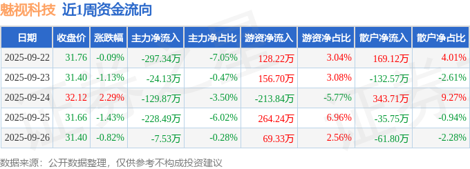 资金流向数据方面,本周魅视科技主力资金合计净流出687.35万元,游资资金合计净流入404.64万元,散户资金合计净流入282.71万元。本周资金流向一览见下表: