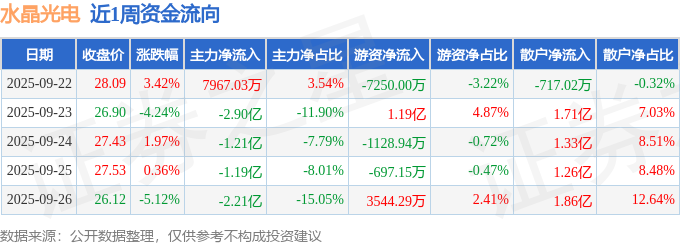 资金流向数据方面,本周水晶光电主力资金合计净流出6.72亿元,游资资金合计净流入6324.3万元,散户资金合计净流入6.09亿元。本周资金流向一览见下表: