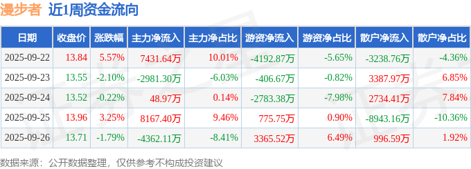 资金流向数据方面,本周漫步者主力资金合计净流入8304.6万元,游资资金合计净流出3241.65万元,散户资金合计净流出5062.95万元。本周资金流向一览见下表:
