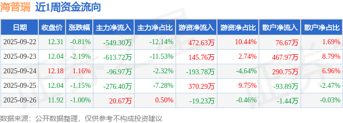 资金流向数据方面,本周海普瑞主力资金合计净流出1515.73万元,游资资金合计净流入775.66万元,散户资金合计净流入740.06万元。本周资金流向一览见下表: