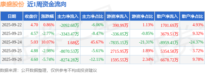 资金流向数据方面,本周康盛股份主力资金合计净流出4986.4万元,游资资金合计净流出3468.7万元,散户资金合计净流入8455.1万元。本周资金流向一览见下表: