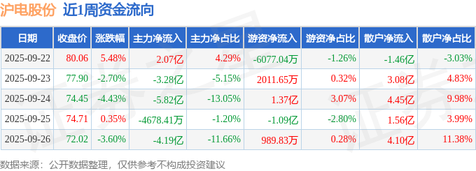 沪深股通持股方面,截止2025年9月26日收盘,沪电股份深股通持股数为8586.63万股,占流通股比为449.0%。