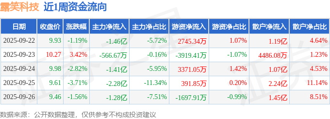 资金流向数据方面,本周露笑科技主力资金合计净流出6.49亿元,游资资金合计净流入890.92万元,散户资金合计净流入6.4亿元。本周资金流向一览见下表: