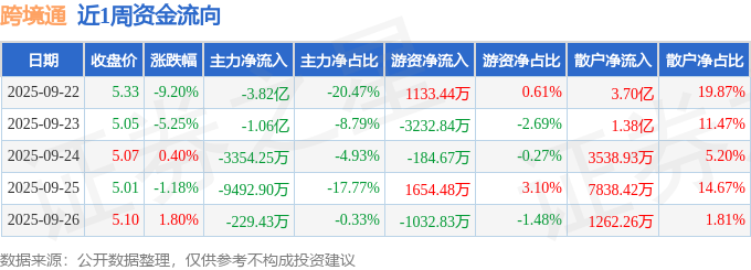 资金流向数据方面,本周跨境通主力资金合计净流出6.18亿元,游资资金合计净流出1662.42万元,散户资金合计净流入6.35亿元。本周资金流向一览见下表: