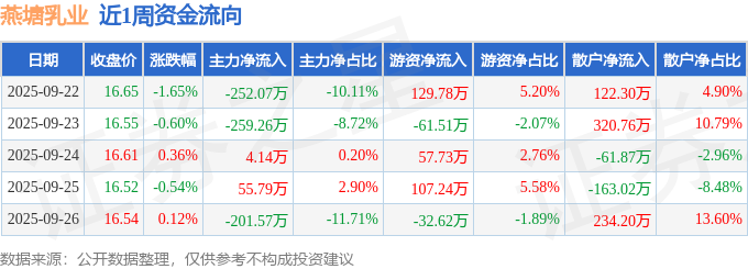资金流向数据方面,本周燕塘乳业主力资金合计净流出652.98万元,游资资金合计净流入200.61万元,散户资金合计净流入452.36万元。本周资金流向一览见下表: