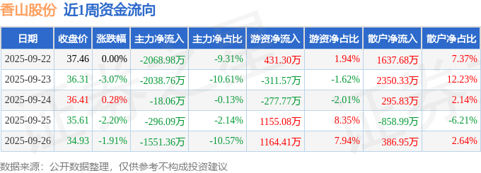 资金流向数据方面,本周香山股份主力资金合计净流出5973.26万元,游资资金合计净流入2161.46万元,散户资金合计净流入3811.8万元。本周资金流向一览见下表: