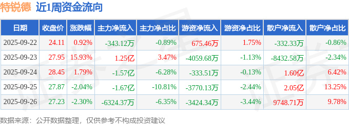 资金流向数据方面,本周特锐德主力资金合计净流出2.66亿元,游资资金合计净流出1.09亿元,散户资金合计净流入3.75亿元。本周资金流向一览见下表: