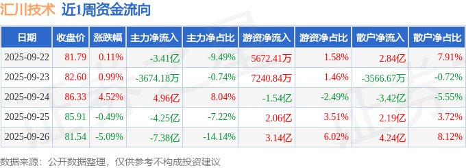 沪深股通持股方面,截止2025年9月26日收盘,汇川技术深股通持股数为5.48亿股,占流通股比为2416.0%。