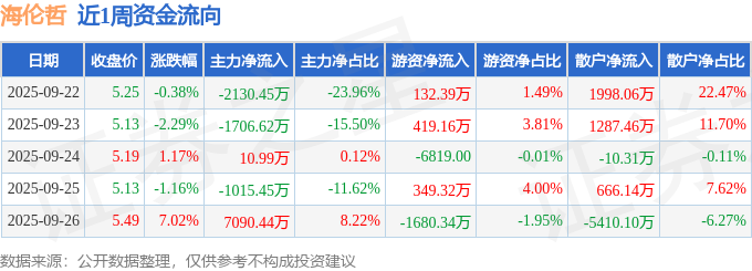 资金流向数据方面,本周海伦哲主力资金合计净流入2248.9万元,游资资金合计净流出780.15万元,散户资金合计净流出1468.75万元。本周资金流向一览见下表:
