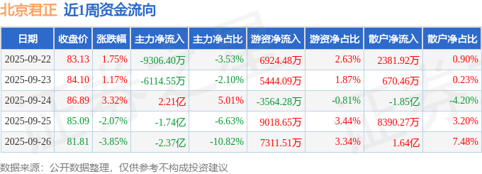 资金流向数据方面,本周北京君正主力资金合计净流出3.45亿元,游资资金合计净流入2.51亿元,散户资金合计净流入9325.55万元。本周资金流向一览见下表: