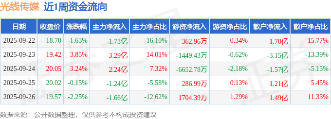 资金流向数据方面,本周光线传媒主力资金合计净流入9000.0万元,游资资金合计净流出5747.88万元,散户资金合计净流出3252.12万元。本周资金流向一览见下表: