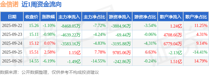 资金流向数据方面,本周金信诺主力资金合计净流出2.01亿元,游资资金合计净流入2391.92万元,散户资金合计净流入1.77亿元。本周资金流向一览见下表: