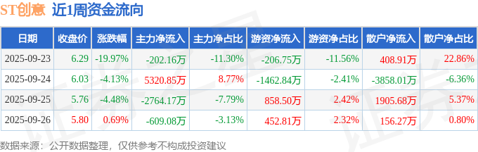 资金流向数据方面,本周ST创意主力资金合计净流入1745.44万元,游资资金合计净流出358.29万元,散户资金合计净流出1387.15万元。本周资金流向一览见下表: