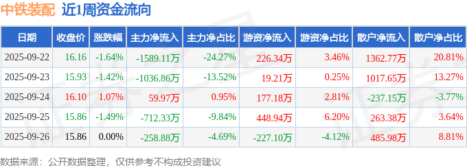 资金流向数据方面,本周中铁装配主力资金合计净流出3537.2万元,游资资金合计净流入644.57万元,散户资金合计净流入2892.63万元。本周资金流向一览见下表: