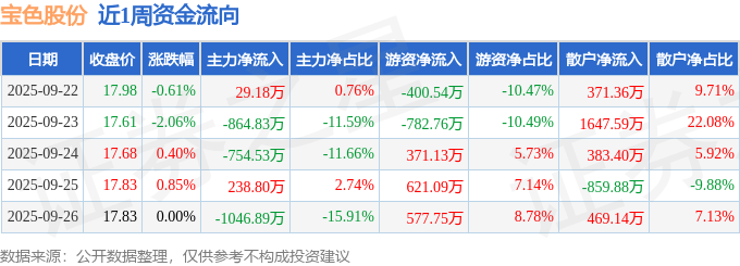 资金流向数据方面,本周宝色股份主力资金合计净流出2398.28万元,游资资金合计净流入386.68万元,散户资金合计净流入2011.6万元。本周资金流向一览见下表: