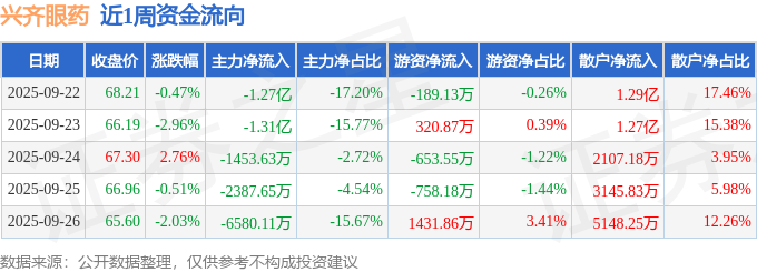 资金流向数据方面,本周兴齐眼药主力资金合计净流出3.62亿元,游资资金合计净流入151.88万元,散户资金合计净流入3.6亿元。本周资金流向一览见下表:
