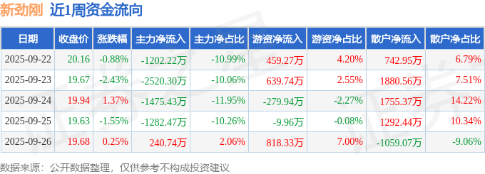 资金流向数据方面,本周新劲刚主力资金合计净流出6239.69万元,游资资金合计净流入1627.44万元,散户资金合计净流入4612.25万元。本周资金流向一览见下表: