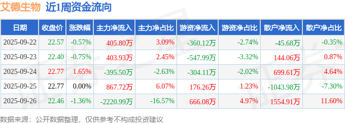 资金流向数据方面,本周艾德生物主力资金合计净流出939.04万元,游资资金合计净流出369.89万元,散户资金合计净流入1308.93万元。本周资金流向一览见下表: