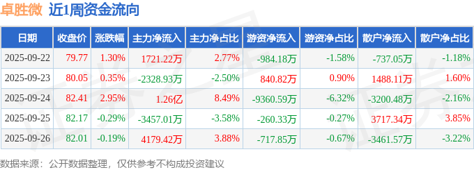 资金流向数据方面,本周卓胜微主力资金合计净流入1.27亿元,游资资金合计净流出1.05亿元,散户资金合计净流出2193.65万元。本周资金流向一览见下表: