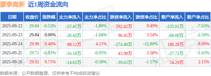 资金流向数据方面,本周蒙泰高新主力资金合计净流出28.56万元,游资资金合计净流入118.72万元,散户资金合计净流出90.16万元。本周资金流向一览见下表:
