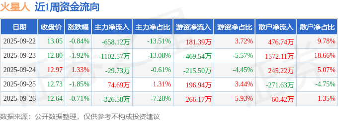 资金流向数据方面,本周火星人主力资金合计净流出2042.31万元,游资资金合计净流出40.55万元,散户资金合计净流入2082.86万元。本周资金流向一览见下表: