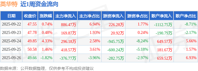 资金流向数据方面,本周英华特主力资金合计净流入1394.32万元,游资资金合计净流出1581.54万元,散户资金合计净流入187.21万元。本周资金流向一览见下表: