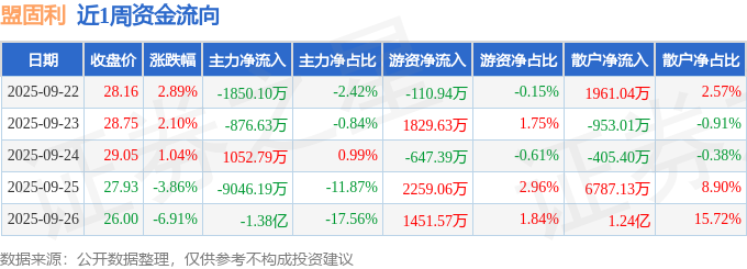 资金流向数据方面,本周盟固利主力资金合计净流出2.46亿元,游资资金合计净流入4781.94万元,散户资金合计净流入1.98亿元。本周资金流向一览见下表: