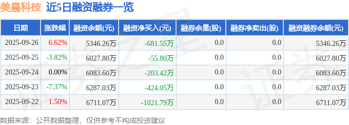 证券之星消息,截至2025年9月26日收盘,美晨科技(300237)报收于3.22元,上涨6.62%,换手率12.21%,成交量176.05万手,成交额5.62亿元。