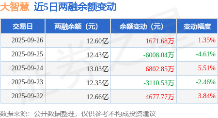 证券之星消息,9月26日,大智慧(601519)融资买入1.97亿元,融资偿还1.8亿元,融资净买入1657.56万元,融资余额12.57亿元,近20个交易日中有12个交易日出现融资净买入。