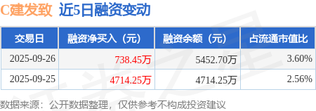 证券之星消息,9月26日,C建发致(301584)融资买入4402.56万元,融资偿还3664.11万元,融资净买入738.45万元,融资余额5452.7万元。