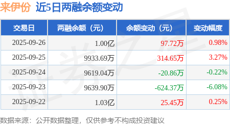 证券之星消息,9月26日,来伊份(603777)融资买入724.84万元,融资偿还627.13万元,融资净买入97.72万元,融资余额1.0亿元,近20个交易日中有11个交易日出现融资净买入。