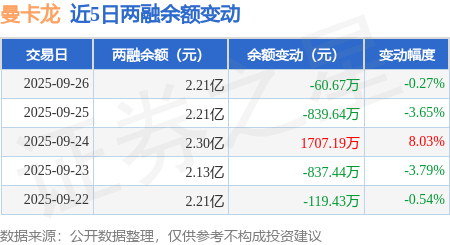证券之星消息,9月26日,曼卡龙(300945)融资买入3408.06万元,融资偿还3468.73万元,融资净卖出60.67万元,融资余额2.21亿元。