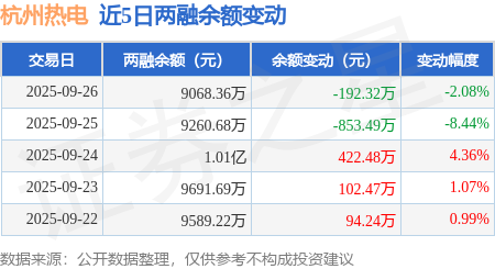 证券之星消息,9月26日,杭州热电(605011)融资买入470.87万元,融资偿还662.93万元,融资净卖出192.06万元,融资余额9031.0万元,近20个交易日中有12个交易日出现融资净买入。