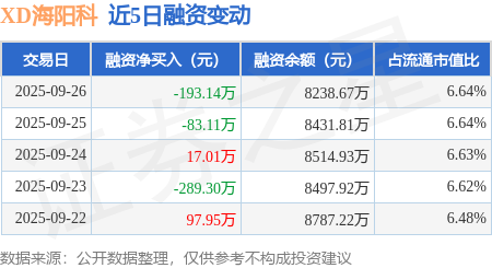 证券之星消息,9月26日,XD海阳科(603382)融资买入517.85万元,融资偿还710.99万元,融资净卖出193.14万元,融资余额8238.67万元。