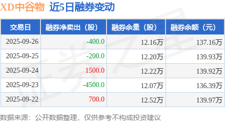 证券之星消息,9月26日,XD中谷物(603565)融资买入1150.36万元,融资偿还1488.73万元,融资净卖出338.37万元,融资余额1.2亿元。