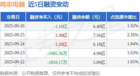 证券之星消息,9月26日,鸣志电器(603728)融资买入1.37亿元,融资偿还2.53亿元,融资净卖出1.16亿元,融资余额6.4亿元。