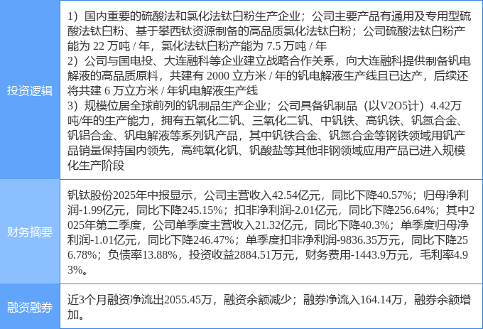 该股为有色 · 钒,钒电池,钛白粉概念热股,当日有色 · 钒概念上涨3.36%,钒电池概念上涨2.94%,钛白粉概念上涨2.51%。