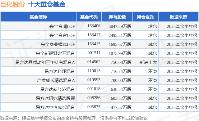 根据2025基金半年报公募基金重仓股数据,重仓该股的公募基金共57家,其中持有数量最多的公募基金为兴证全球基金的兴全合润LOF。兴全合润LOF目前规模为218.5亿元,最新净值2.103(9月26日),较上一交易日下跌2.11%,近一年上涨59.64%。该公募基金现任基金经理为谢治宇。谢治宇在任的基金产品包括:兴全合宜混合(LOF)A,管理时间为2018年1月23日至今,期间收益率为104.08%;兴全社会价值三年持有混合,管理时间为2019年12月26日至今,期间收益率为116.09%;兴全合润混合C,管理时间为2025年4月8日至今,期间收益率为49.79%。