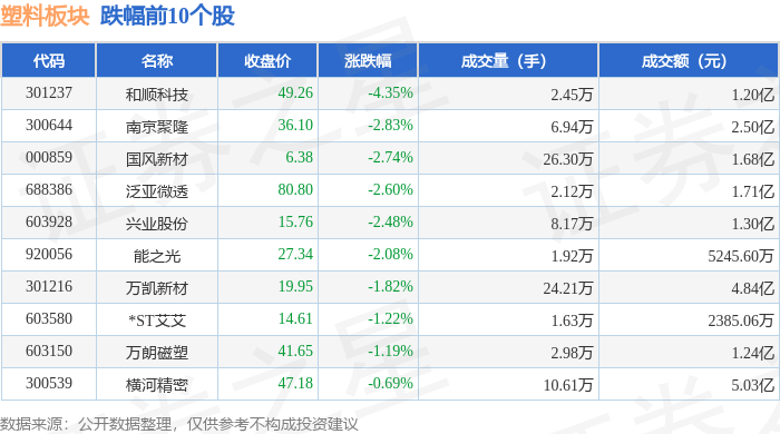 证券之星消息,9月29日塑料板块较上一交易日上涨2.93%,佛塑科技领涨。当日上证指数报收于3862.53,上涨0.9%。深证成指报收于13479.43,上涨2.05%。塑料板块个股涨跌见下表: