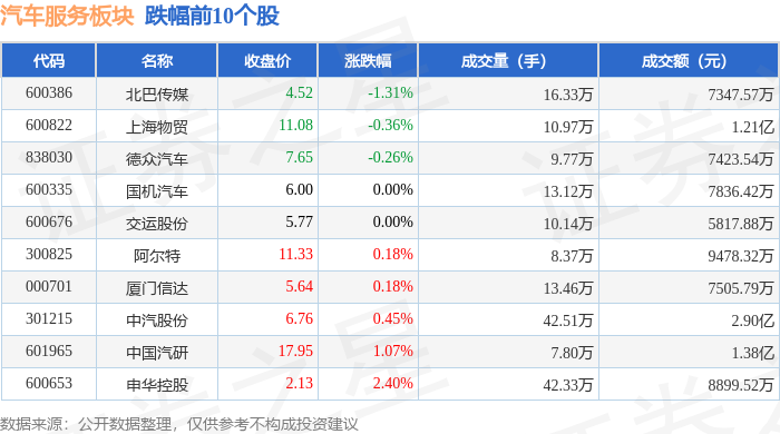 证券之星消息,9月29日汽车服务板块较上一交易日上涨0.59%,浩物股份领涨。当日上证指数报收于3862.53,上涨0.9%。深证成指报收于13479.43,上涨2.05%。汽车服务板块个股涨跌见下表: