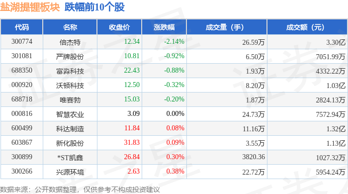 证券之星消息,9月29日盐湖提锂板块较上一交易日上涨3.86%,东华科技领涨。当日上证指数报收于3862.53,上涨0.9%。深证成指报收于13479.43,上涨2.05%。盐湖提锂板块个股涨跌见下表: