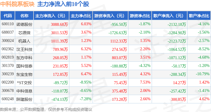 从资金流向上来看,当日中科院系板块主力资金净流出2.97亿元,游资资金净流出5435.92万元,散户资金净流入3.51亿元。中科院系板块个股资金流向见下表: