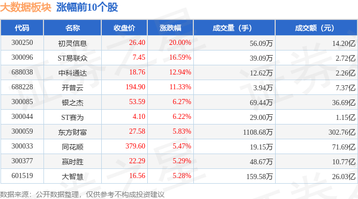 证券之星消息,9月29日大数据板块较上一交易日上涨1.04%,初灵信息领涨。当日上证指数报收于3862.53,上涨0.9%。深证成指报收于13479.43,上涨2.05%。大数据板块个股涨跌见下表: