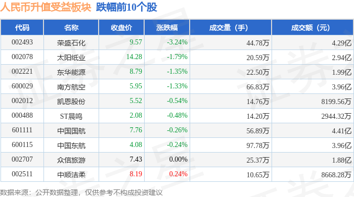 证券之星消息,9月29日人民币升值受益板块较上一交易日上涨0.41%,景兴纸业领涨。当日上证指数报收于3862.53,上涨0.9%。深证成指报收于13479.43,上涨2.05%。人民币升值受益板块个股涨跌见下表: