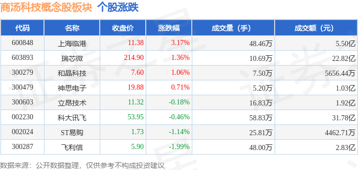 证券之星消息,9月29日商汤科技概念股板块较上一交易日上涨0.45%,上海临港领涨。当日上证指数报收于3862.53,上涨0.9%。深证成指报收于13479.43,上涨2.05%。商汤科技概念股板块个股涨跌见下表: