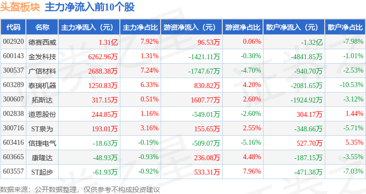 从资金流向上来看,当日头盔板块主力资金净流出1.01亿元,游资资金净流出1.44亿元,散户资金净流入2.45亿元。头盔板块个股资金流向见下表: