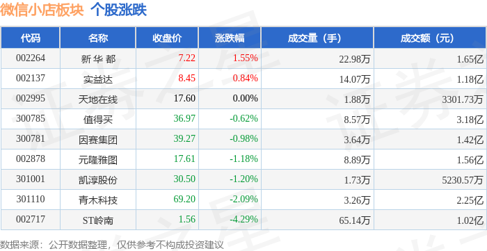 证券之星消息,9月29日微信小店板块较上一交易日下跌0.78%,ST岭南领跌。当日上证指数报收于3862.53,上涨0.9%。深证成指报收于13479.43,上涨2.05%。微信小店板块个股涨跌见下表: